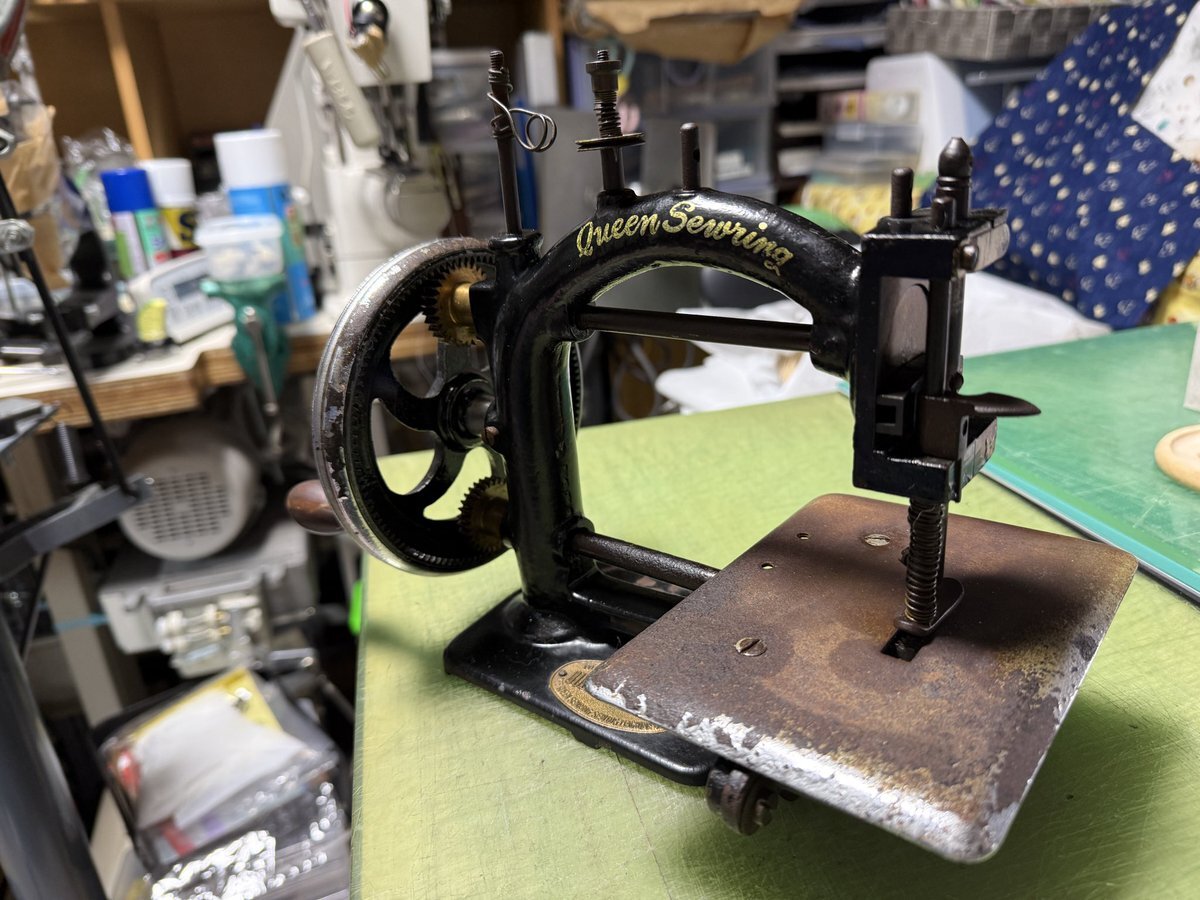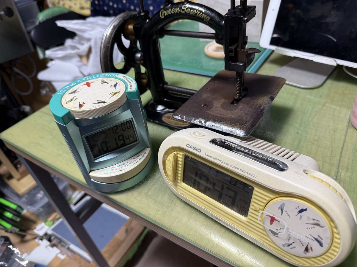 ちなみに、この錆びの多いトイミシンはおいくらかと言いますと、千円でした‼️ だから即買ってしまいました😸 ちなみに、この骨董品屋では以前にいくつかの野鳥の声がアラーム音として使える置き時計を買っていたり。 pic.x.com/7CctJO9cqI x.com/robinbirdcreat…
